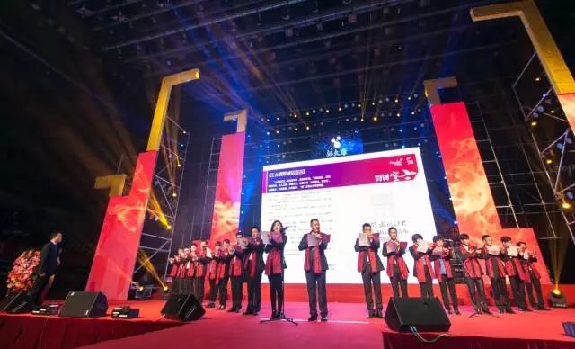 企业的发展离不开合作伙伴的携手并肩,江大源为了诚挚的感谢十四年来陪伴自己走过艰苦创业岁月的合作伙伴们,特地为他们制作了一款纪念品——精诚携手,来自全国数十个省市的合作代表上台与江大源共享荣光。