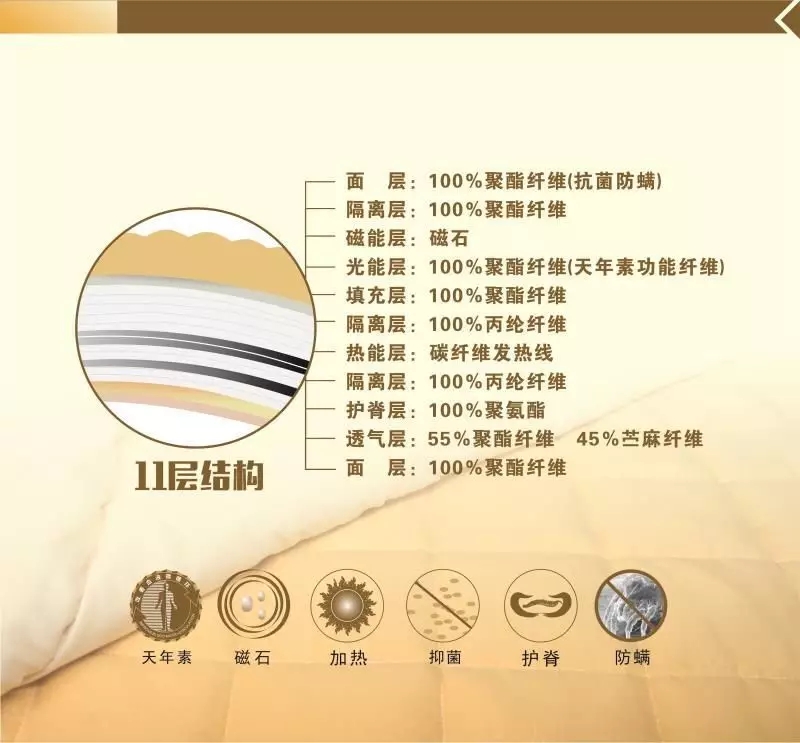 因此,体虚、容易出汗的人,还有老人,睡在暖融融功能床垫上,不会产生闷热湿粘的感觉。