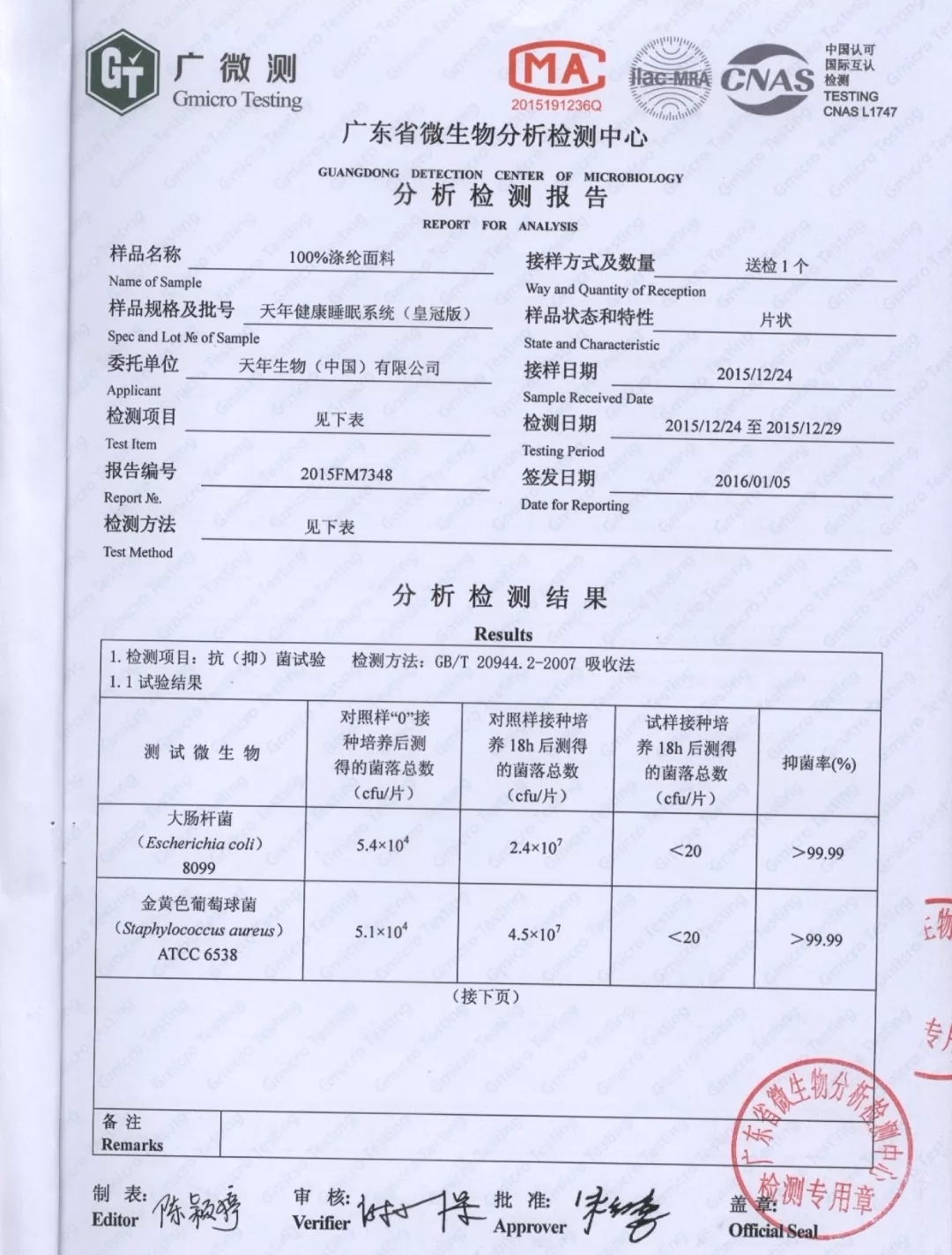 对金黄色葡萄球菌、大肠杆菌的抗菌率高达99%以上,能够帮助你拥有一个健康的睡眠环境。